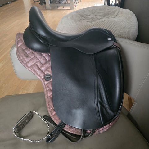 Sadlen er kun 2 år gammel. Stigremme altid brugt under sadelklapper, brugt max 20 gange. Omstoppet sidste år og brugt 5 gange siden, pga. halt hest. Sadlen er som ny. Hængt varmt og fugtfrit.