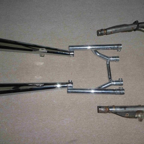 Udstødningen stammer fra en ulykkesfri Yamaha XVS 1300 Midnight Star, årgang 2007.