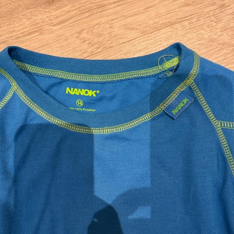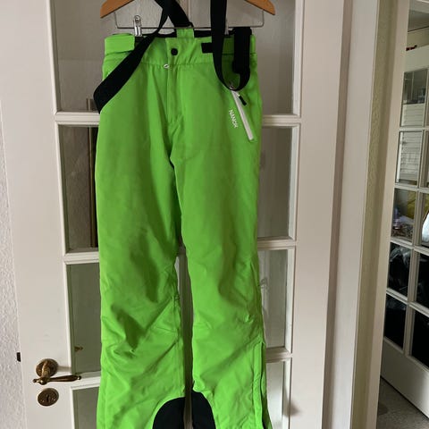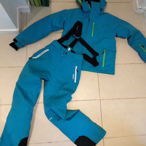 Nanok sæt bestående af skibukser og jakke i størrelse 14. Farven er sort med orange detaljer. Jakken har hætte og flere lynlåslommer. Bukserne har seler og er designet til vinterbrug og udendørs aktiviteter i koldt vejr.