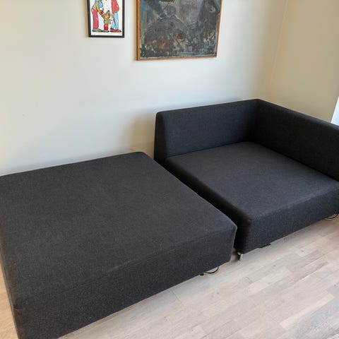 Sofa fra Bolia består af 4 moduler i farven antracit grå.