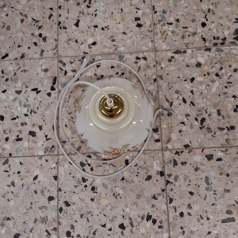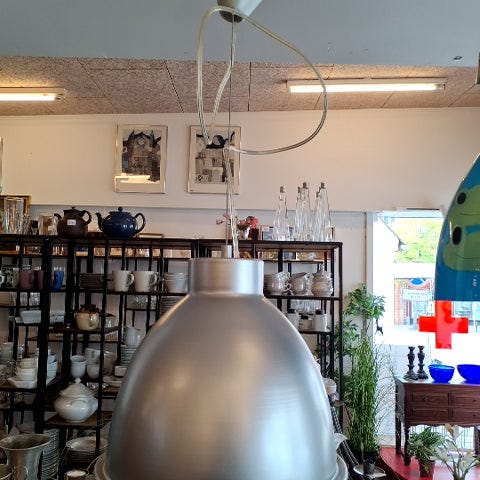Lampens skærm er stor og rund med en glat, blank overflade. Den hænger ned fra en ledning.,Afhentes i:,Røde Kors Roskildevej / Valby (101),Bemærk at mail, chat og beskeder ikke besvares, og varen skal købes på knappen "Gå til varen"