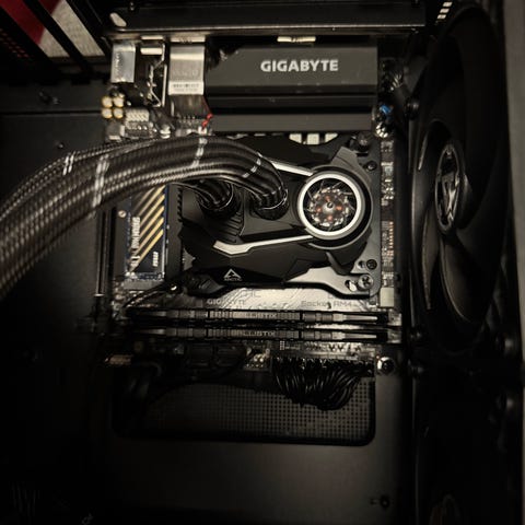 Luftkøler: Zalman CNPS20X yder lign af en Noctua DH15 ifølge test. Den kan uden problemer køle 5800X CPU'en med blæserne under 800RPM hvor de stort set er uhørlige, selv under fuld belastning.