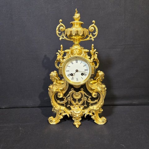 Pragtfuld smuk forgyldt bronzen/marmoreret Lodewijk den 16. århundredes stil pendul. Topkvalitet, meget flot færdiggjort med bronzefigurer. Alt er af høj kvalitet med smukke billeder. Dette er ægte topkvalitet fra omkring 1880. Klokken er omkring 150 år gammel og i topstand. Pendulen er 26 cm høj, 10 cm dyb, og bredden er 15 cm. Pendulen vejer 4,2 kg. Top fransk kvalitet.