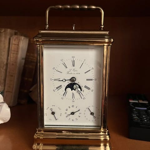 Fantastisk rejsependelur Matthew Norman med komplet kalender, månefaser, smukt udsmykket, fuldt sæt, med sin kasse i fløjlslæder. Fungerer, afsendelsen er forsikret via UPS