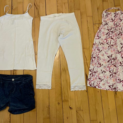 Blandet tøj, 14 dele + diverse strømper, H&M, Kids Up, mv, str. 110, nattøj, kjoler, bukser, t-shirts, underbukser.