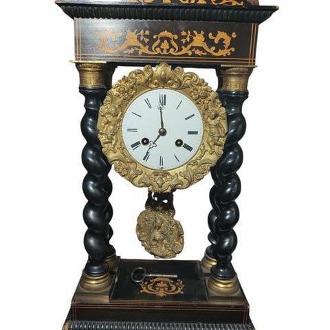 Antikt vægur af egetræ og kingwood i barok stil fra midten af det 19. århundrede (ca. 1850–1900), mekanisk 8-dages urværk, halvtime rungning med én klokke, i fremragende stand. Klik på den blå "gå til varen" knap, for at købe eller byde på denne vare. Den samlede pris vil blive vist inden du afgiver dit bud.