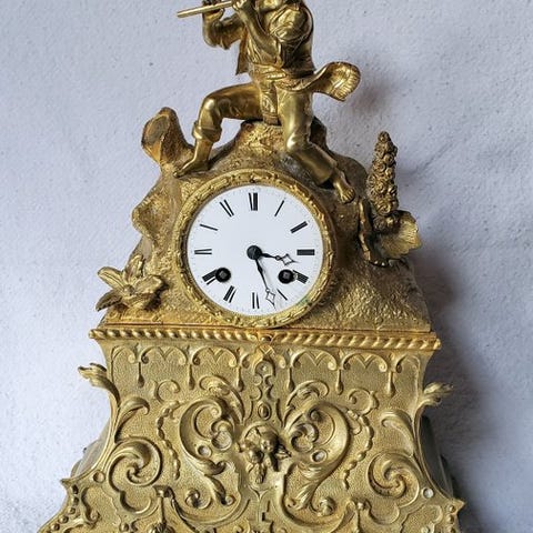Guldforgyldt kasse • 7-dages mekanisk urværk • Klassisk Tiffany-urskive