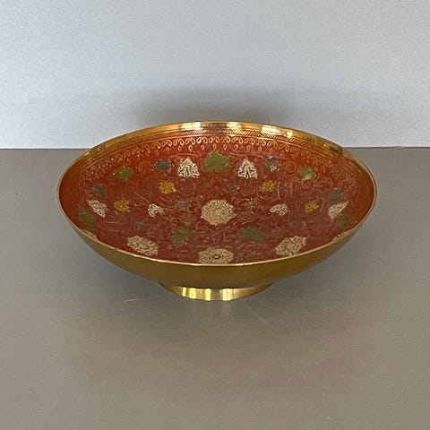 Kobber cloisonné figur- og blomstmotiv, i begonias form – kop og skål-sæt