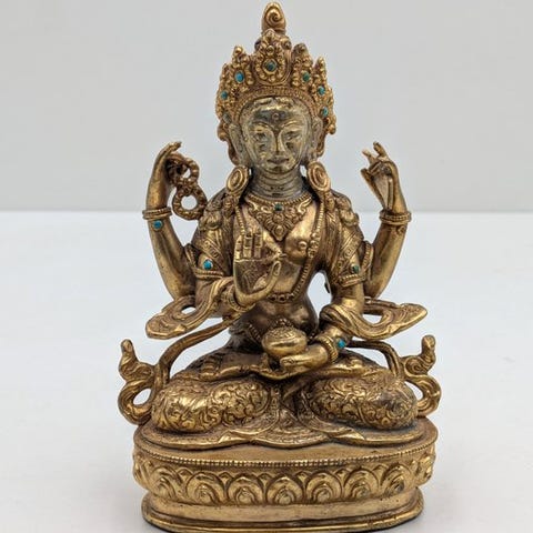 Unik samling af fire forgyldte bronzefigurer med en højde på 29 cm og samlet vægt 6,8 kg, fra seneste 20. århundredes dynastisk stil, med titlen "Unieke set: vier standbeelden 29 cm / 6.8 kg". Klik på den blå "gå til varen" knap, for at købe eller byde på denne vare. Den samlede pris vil blive vist inden du afgiver dit bud.