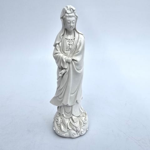 Guanyin, en kinesisk blanc-de-Chine figur af Guanyin, signeret med trykt mærke på bagsiden, 31 cm høj og 14 cm bred. Klik på den blå "gå til varen" knap, for at købe eller byde på denne vare. Den samlede pris vil blive vist inden du afgiver dit bud.