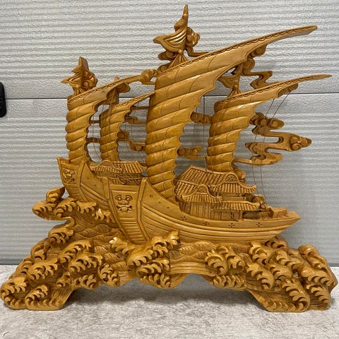 Hugskåret, malet og forgyldt træstatue af en kejser fra Kina, måler 22 x 13 x 10,5 cm (vekt 700 g), i god stand, ikke underskrevet; malingen er udført med pigment og vegetabilsk farve. Klik på den blå "gå til varen" knap, for at købe eller byde på denne vare. Den samlede pris vil blive vist inden du afgiver dit bud.