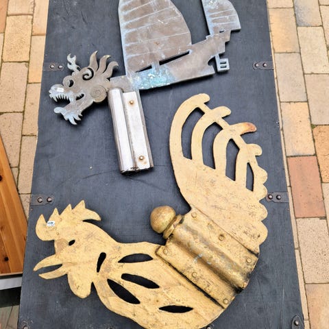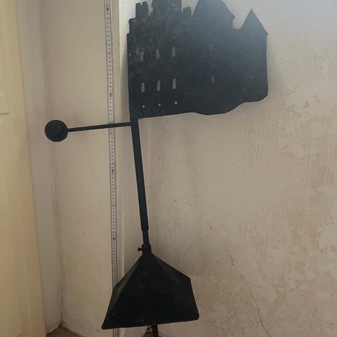 Jernvejrhane af jern fra perioden 2000-2010, fremstillet i Tyskland, dimensioner 35 cm bredde, 35 cm dybde og 60 cm i højden, i god brugt stand med små tegn på alder og pletter. Klik på den blå "gå til varen" knap, for at købe eller byde på denne vare. Den samlede pris vil blive vist inden du afgiver dit bud.