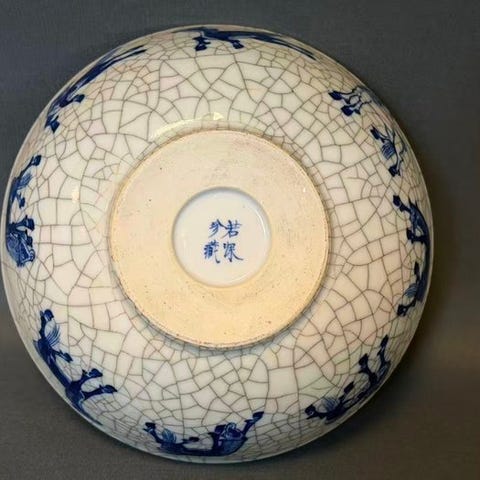 En dyb skål af porcelæn fra Jingdezhen, Kina, dateret til Jiajing-tiden (1522–1566) med underglazeblå dekoration “Galloping Horses Above Wild Sea and Between Fire Clouds – Ming Dynasty – Horses of Wang Mu”, i fremragende stand. Klik på den blå "gå til varen" knap, for at købe eller byde på denne vare. Den samlede pris vil blive vist inden du afgiver dit bud.