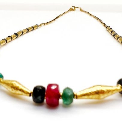 Indien-tilhørsforhold: fin håndflettet guldkæde fra det sydlige Indien, 22 kt, ca. 7,8 g, fra det 20. århundrede, i god stand, med venstregevindet åbning under låsen for at føre vedhæng gennem. Klik på den blå "gå til varen" knap, for at købe eller byde på denne vare. Den samlede pris vil blive vist inden du afgiver dit bud.