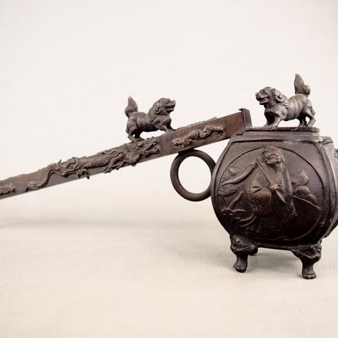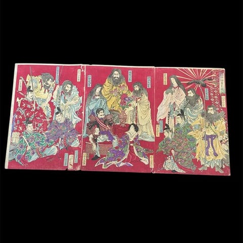 Originalt trægeværdigvisningsskilt fra Meiji-æraen, Fjerde bekendtgørelse af de fem offentlige proklamationer udstedt af Dajokan i 1868; dimensioner 44,5 cm høj, 121 cm bred og 5,8 cm dyb; vægt 6,3 kg; i dårlig stand med slid, sprækker og rust. Klik på den blå "gå til varen" knap, for at købe eller byde på denne vare. Den samlede pris vil blive vist inden du afgiver dit bud.
