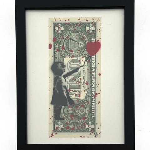 Love Street Rat af WhyCreationz, et værk i mixed media med stencil og akryl på en dollarseddel, 19 × 15 cm, edition 7, signeret i pladen og håndsigneret, vægt 1 kg, fra Nederlandene, i fremragende stand, med COA. Klik på den blå "gå til varen" knap, for at købe eller byde på denne vare. Den samlede pris vil blive vist inden du afgiver dit bud.