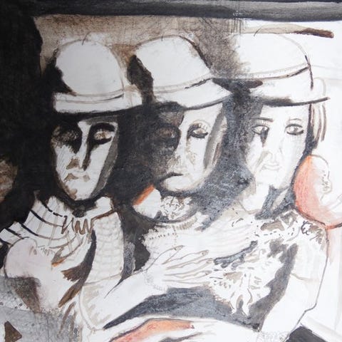 Gouache og blæk på papir.