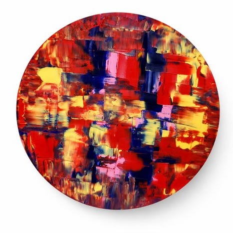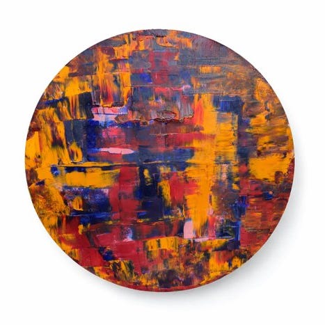 Abstract Impulses – Tondo no. 5/2025 er et værk af samtidskunst, der skiller sig ud i serien ved en lysere og mere levende farvepalet, i stand til at forholde sig til lyset og det omkringliggende rum på en umiddelbar og fængende måde.