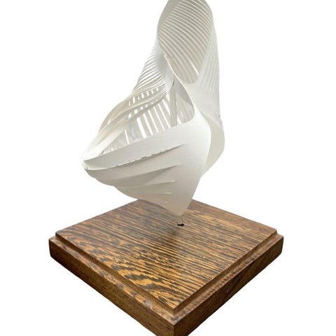 Skulpturen består af fem dele, som kan arrangeres på utallige måder, og hver gang skaber den en forskellig spektakulær skulptur.
