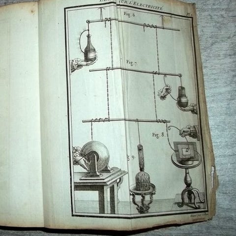 BESKRIVELSE: Til salg er Edme-Gilles Guyots (1706-1786) centrale værk i hans berømte tredje udgave fra 1786, revideret og betydeligt udvidet. Værket udgør 'summen' af oplysningstidens naturmagi, og forener fysik, optik, magnetisme og elektricitet med det formål at underholde og oplyse.
