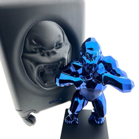 KiwiKong (Lila) og Trolley – NO Reserve, en 2021-limited edition-skulptur af Richard Orlinski, signeret på pladen og med COA, i fremragende stand, leveret i Kong Escape Trolley; KiwiKong måler 370 × 260 × 180 mm og vejer 2,50 kg, mens den medfølgende kuffert måler 520 × 330 × 250 mm og vejer 3 kg. Klik på den blå "gå til varen" knap, for at købe eller byde på denne vare. Den samlede pris vil blive vist inden du afgiver dit bud.