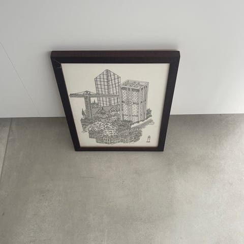 Tegningens mål: Længde: 69 cm Bredde: 32 cm uden ramme