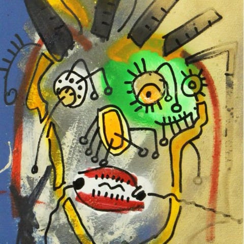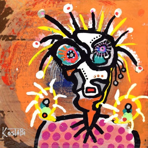 Mark Kostabi, Time out, originalt acrylicmaleri på lærred fra 2007, i stil Arte popolare, 100 × 80 cm, med ramme (116 × 96 × 4 cm), vægt 7 kg, oprindelse Nordamerika. Klik på den blå "gå til varen" knap, for at købe eller byde på denne vare. Den samlede pris vil blive vist inden du afgiver dit bud.