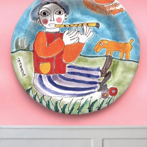 Pragtfuld keramiktallerken i farverig keramik, originalt værk af mester Salvatore Fiume fra 1980'erne.