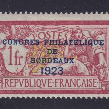 Fra Frankrig, Poste Aérienne Yvert 2 'Merson 5fr bleu' i blok af fire, uden seler, TB-stand. Klik på den blå "gå til varen" knap, for at købe eller byde på denne vare. Den samlede pris vil blive vist inden du afgiver dit bud.