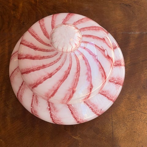 Glas kuglebrevholder fra Italien, Patterned Millefiori (Daisy Canes), Ø 8,1 cm, højde 6,9 cm, producent Vetreria 3 Fiori, ca. 1975–2000, i fremragende stand med minimale aldersspor og Murano-mærke på bunden. Klik på den blå "gå til varen" knap, for at købe eller byde på denne vare. Den samlede pris vil blive vist inden du afgiver dit bud.