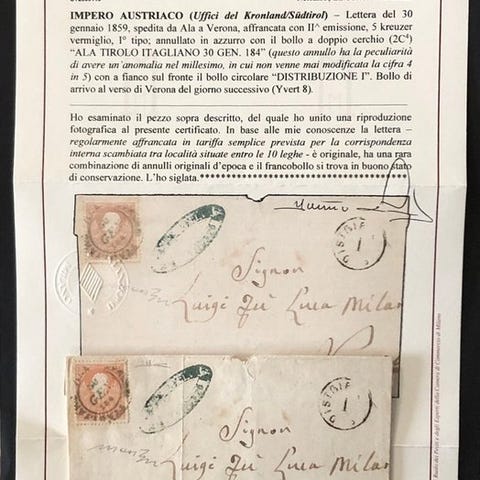 Østrig, 6+6 kreuzer 1850, historisk Diena-certifikat på tysk, sjælden; brugt til post. Klik på den blå "gå til varen" knap, for at købe eller byde på denne vare. Den samlede pris vil blive vist inden du afgiver dit bud.
