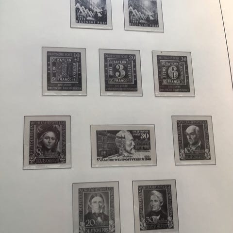 Frimærker, stort set afstemplede fra oprindelserne til 1940, hvorefter de blev nye* og nye** i takt med, at årene nærmede sig 1950'erne.