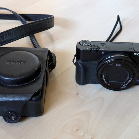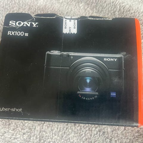 Sony DSC-RX100 Mark III leveres med batteri, oplader og USB-kabel. Kameraet har tegn på brug og en revne på den ene side af kabinettet. Det er alt sammen rent kosmetisk. Skærmen og glaslinsen ser fremragende ud, og kameraet fungerer ellers perfekt.