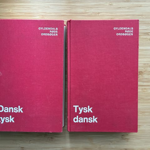 Gyldendals røde ordbøger Tysk Dansk ordbog med rødt omslag. Ordbogen indeholder oversættelser og forklaringer mellem tysk og dansk.