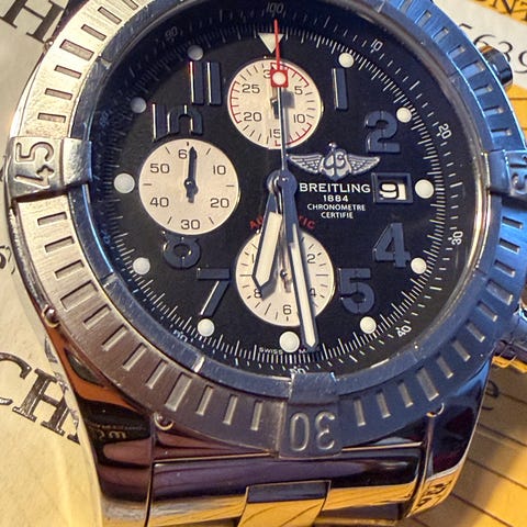 Breitling Avenger Automatic 42, reference A17328101B1X1, stål корпус, diameter 42 mm, sort urskive, schweizisk automatisk bevægelse, med original æske, papirer og garantibevis, mint tilstand og ubrugte, indgår ægthedscertifikat og forsendelse forsikret. Klik på den blå "gå til varen" knap, for at købe eller byde på denne vare. Den samlede pris vil blive vist inden du afgiver dit bud.