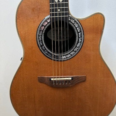Til salg er en 1979 Ovation 1127 Glen Campbell Artist, en klassisk amerikanskproduceret akustisk-elektrisk guitar kendt for sin afbalancerede tone, det hurtige halsgreb og legendarisk pålidelighed på scenen. Denne model blev foretrukket af Glen Campbell selv og er stadig et af Ovations mest respekterede vintage-instrumenter.