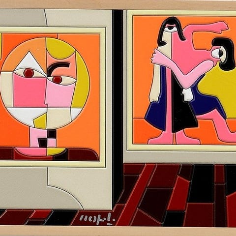 Akrylmalerier på udskåret træ