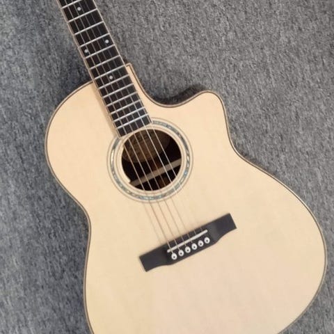 EF740FS-TT - 6-strenget akustisk guitar OMD (OM/Dreadnought-stil) cutaway elektrificeret - Serie Thermal Top - Made in Japan - Skala længde: 644mm - Top: massivt gran 'thermal' - Teknologien 'thermal top', som indebærer tørring af toppene i eksklusive ovne ved høje temperaturer og med meget lav iltkoncentration, giver nyligt producerede instrumenter den volumen og den tone, der er typisk for vintage-instrumenter - Bund: massivt sapele - Sider: masselt sapele - Hals: mahogni - Bedre spilbarhed takket være 'Asymmetrical neck'-systemet, der har en hals med en asymmetrisk 'C'-profil, hvilket