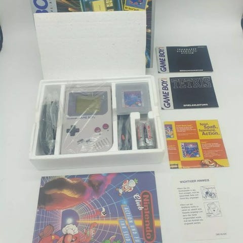 Nintendo Game Boy Classic DMG-01 Tetris-udgave i æske fra 1989, komplet med original æske, inserts og manualer, hård æseindsats, linkkabel, Tetris-kassette med beskyttelsesetui, hovedtelefoner, brugervejledning og Tetris-vejledning, i funktionsdygtig stand. Klik på den blå "gå til varen" knap, for at købe eller byde på denne vare. Den samlede pris vil blive vist inden du afgiver dit bud.