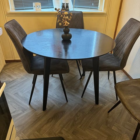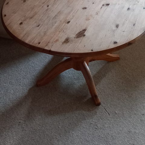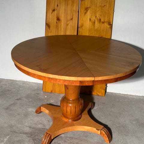 Gammel rundt flot hæve sænkbord Spisebord /sofabord med 2 indskudsplade til . 90 dia 2 x 30 indskudsplader 60 - 72 høj