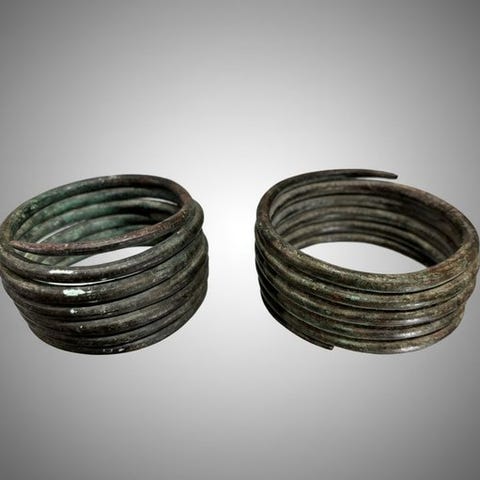 2 meget smukke primitive bronze-mønter i form af armbånd