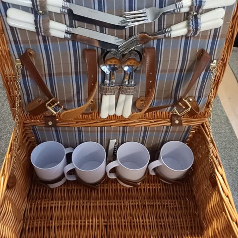 inhoud voor 4 personen - Picnickurv - engelsk - Fletværk, rattan, keramik - N...
