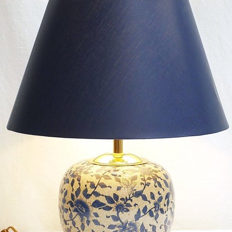 Kompletteret med matchende luksuriøse imitationslæder lampeskærme med raffineret print og en gylden inderside til en varm lysfordeling. Nytilstand!