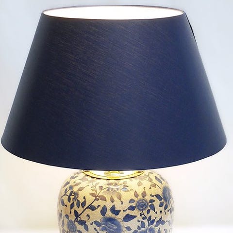 Denne lampe fra 1990'erne stammer fra vores kollektion af bordlamper af meget høj kvalitet, samlet eksklusivt til os af en traditionel tysk producent. Lampen har justerbar højde. Lampeskærmen blev også fremstillet i Tyskland af det eksklusive Contessa Chintz-stof fra JAB Anstoetz. Udsalgsprisen for denne lampe i 1990'erne var 960 DM.