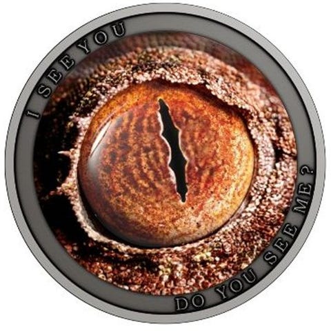 Tredje nummer i serien "Apex Predators" er med titlen Tiger & Komodo og viser en mægtig tiger, der angriber en Komodo bagfra. Begge rovdyr viser sine blottede tænder og skarpe kløer. De er omgivet af en bambusbevoksning. På bagsiden er portrættet af dronning Elizabeth II. Den denomination, vægt, fineness og udstedelsesår er også inkluderet i designet. Komodovaranen er verdens største kødædende øgle og er kendt for sin enorme kæbe med hajlignende tænder. Men