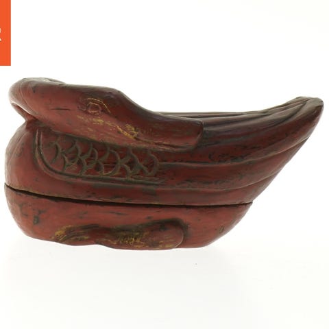 Orientalsk porcelænsløfter med gyldne detaljer, cirka 1960’erne, produceret i Italien af Manifattura asiatica d’ispirazione coloniale anni 1960, med japanske influencer i kolonial stil. Klik på den blå "gå til varen" knap, for at købe eller byde på denne vare. Den samlede pris vil blive vist inden du afgiver dit bud.
