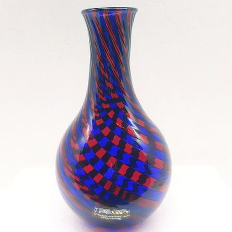 Smukt italiensk design 'stor størrelse' opalvase ca. 23 cm høj (inklusive stopper) med en diameter på ca. 10 cm, lavet af mesterglasblæseren A. Ballarin i Murano (Venedig). Denne vase er håndsigneret af mester A. Ballarin i bunden og leveres med et 'certifikat for ægthed'.