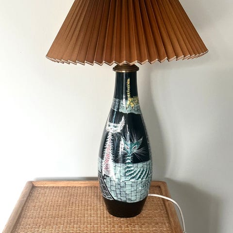 Capodimonte porcelænsko koi-lampefod fra Italien i midcentury modern stil, hvid keramik med én fatning, 81 cm høj inkl. skærm (48 cm uden), fremstillet i Napoli i 1960´erne, god brugt stand med let alderstegn og elektriske installationer fornyet af en fagmand, messing fatning og lampskærm i stoffet. Klik på den blå "gå til varen" knap, for at købe eller byde på denne vare. Den samlede pris vil blive vist inden du afgiver dit bud.
