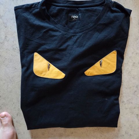 Fendi herretrøje i bomuld til damer i sort med guldfarvet og sort frontinskrift og små gyldne og sorte snore ved siderne, størrelse M, i meget god stand med meget svage brugsspor. Klik på den blå "gå til varen" knap, for at købe eller byde på denne vare. Den samlede pris vil blive vist inden du afgiver dit bud.