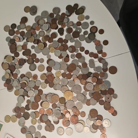Sammensætning: Forskellige lande verden over (ikke-euro). Indeholder en bred vifte af metaller, årstal og nominelle værdier.